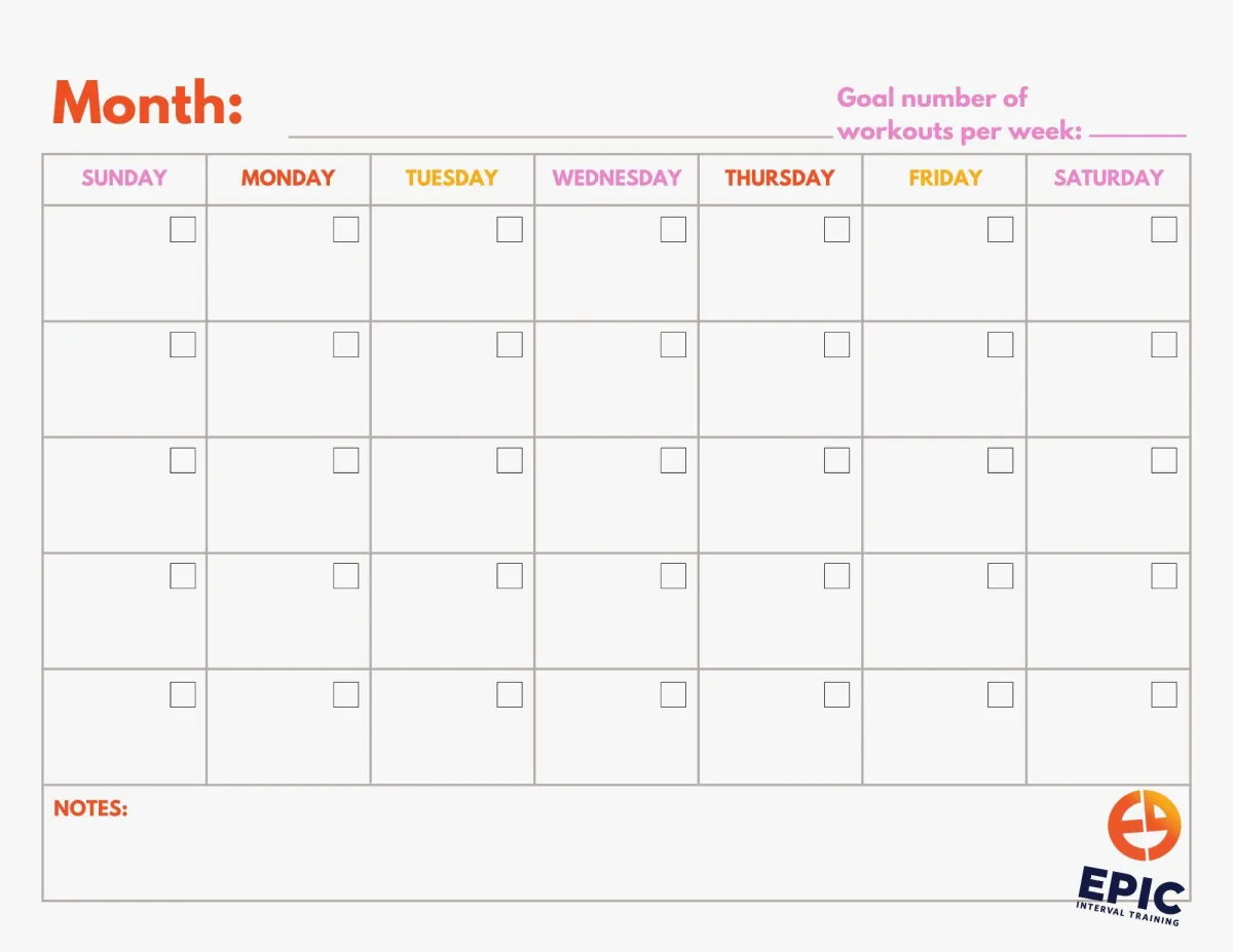 Printable calendar to keep you on track with this program and beyond, even with a busy schedule